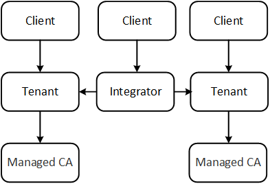 Each client is an authorized end entity of the CA Gateway API and is mapped either to a tenant or an integrator.