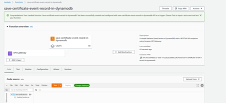 save-certificate-event-record-in-dynamodbname for the Lambda function, you should go to a page like the following.