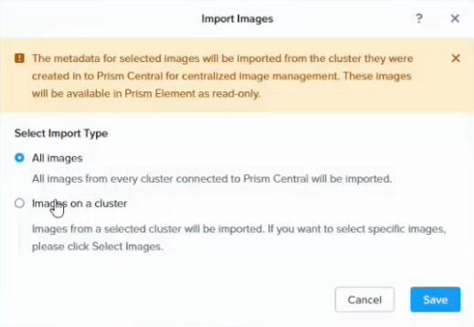 To import the Entrust Cryptographic Security Platform image from Nutanix Prism Element to Nutanix Prism Central