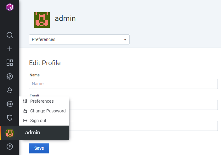 Once you are logged in to Grafana with the default credentials of the initial administrator, you must perform one of the following operations.