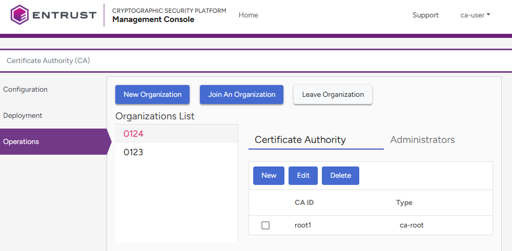 - Click Submit to create the new Certificate Authority.