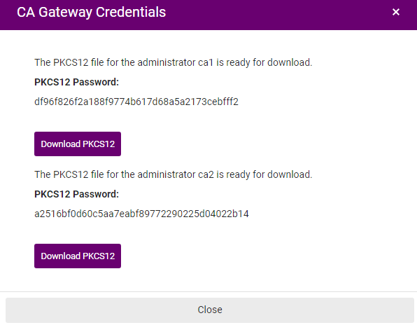 - Click Download to download the PKCS #12 files. Each PKCS #12 includes: