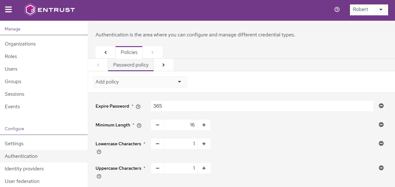 2. Log in to the Management Console as a user with a role granting user management permissions – for example, the initial admin administrator user.