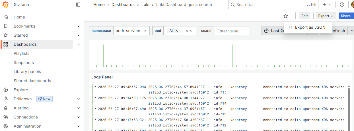 To browse and export logs with the Grafana Loki Dashboard