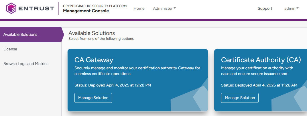 Cryptographic Security Platform provides a Grafana portal to browse logs and metrics on the internal services and the installed Entrust solutions.