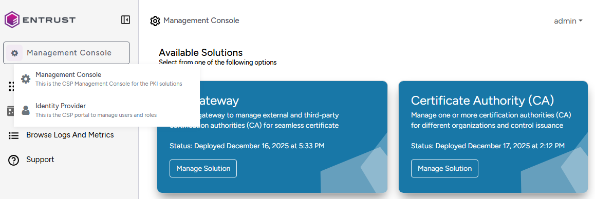 adminadministrator user. - Select Management Console > Identity Provider in the sidebar.