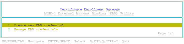 Deleting the HMAC key for an External Account Binding credential will permanently the remove the HMAC key its associated External Account Binding credential from Certificate Enrollment Gateway. After the key and the External Account Binding credential are deleted, new ACMEv2 clients will no longer be able to use the key to create new ACMEv2 accounts, and existing ACMEv2 accounts associated with the credential will no longer be able to perform any ACMEv2 operations.