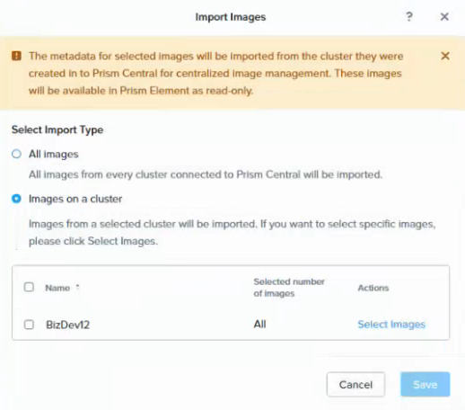 To import the Entrust Cryptographic Security Platform image from Nutanix Prism Element to Nutanix Prism Central
