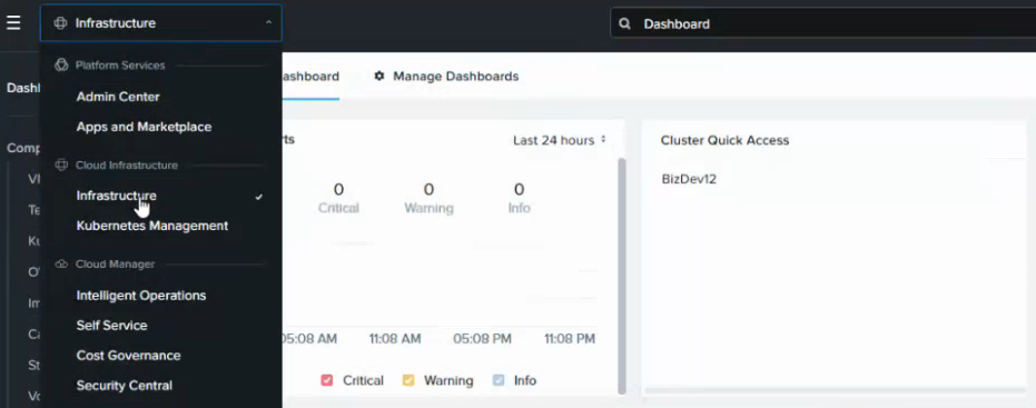 3. Log into the Prism Central portal and select Infrastructure in the top-left menu.