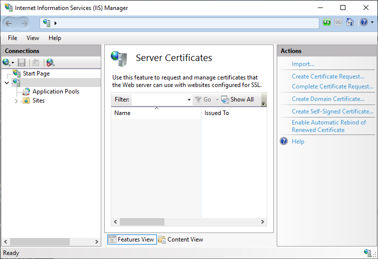 3. In the Home pane, double-click Server Certificates.