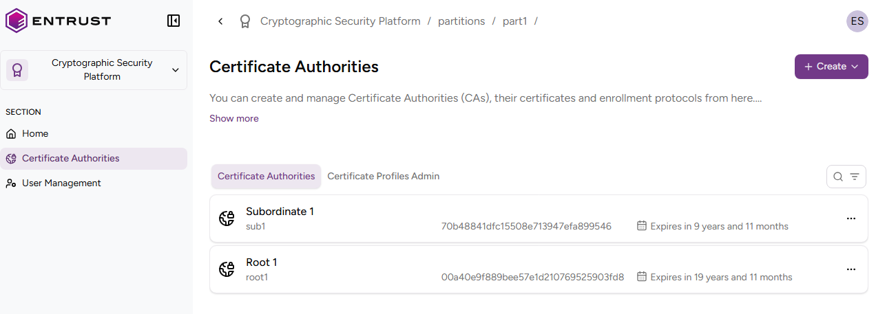 Click Certificate Authorities on the sidebar.