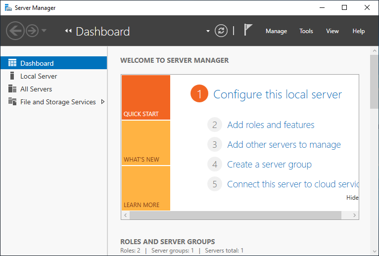 3. In the top navigation bar, select Manage > Add Roles and Features.