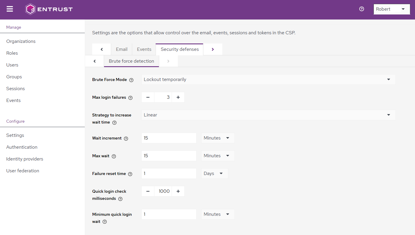 - Click Settings in the sidebar of the user management console.