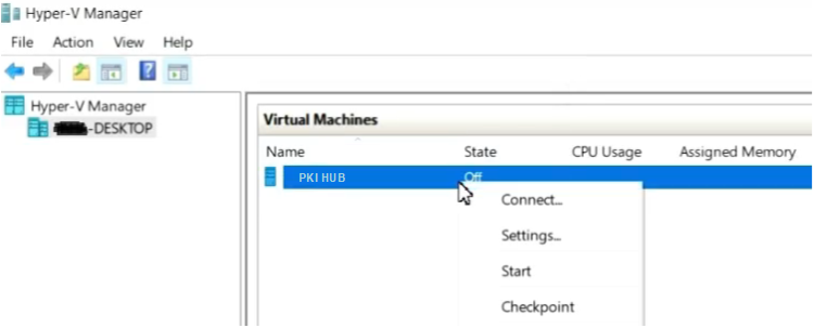 - Open the Hyper-V Manager console.