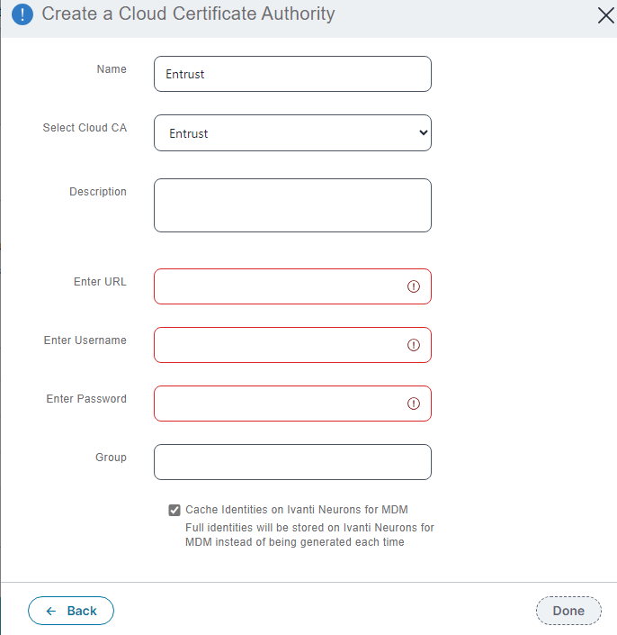Enter a friendly name used for Entrust CA within Ivanti Neurons MDM.