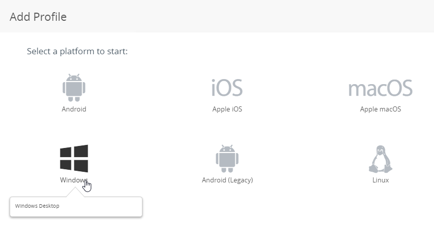 Click on User Profile to enroll users or Device Profile to enroll devices.