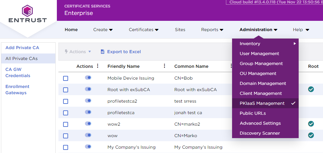 If you want to leverage PKIaaS issuing CAs while maintaining the root of trust within your organization, PKIaaS allows you to sign an issuing CA using a non-PKIaaS root CA you owned.