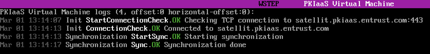 The PKIaaS Virtual Machine tab of the PKIaaS Virtual Machine prompt displays information on each startup step.