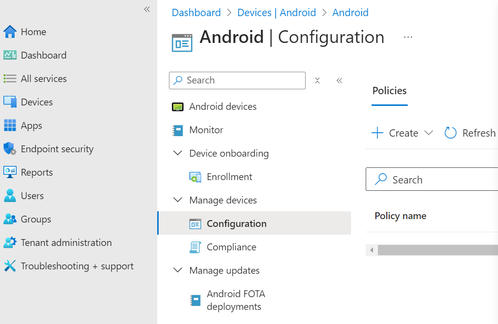 - Select Manage devices > Configuration and click Create.
