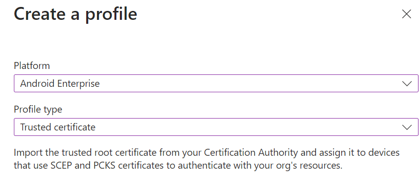 Profile type | Trusted certificate | Trusted certificate | SCEP certificate |