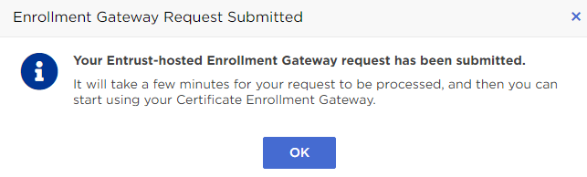 - Click OK in the Enrollment Gateway Request Submitted dialog.