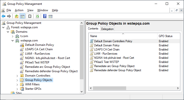 Import the WSTEP certificate chain into the GPO previously created in Creating a Group Policy Object for the WSTEP certificate chain.