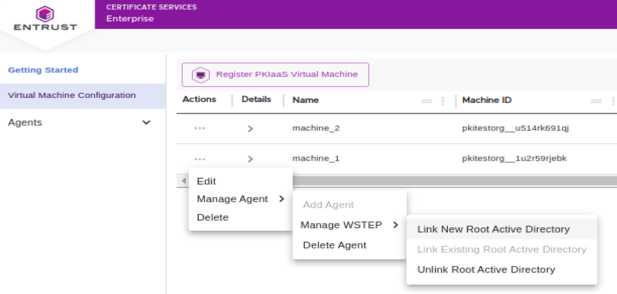 - Follow the steps already described in Adding an agent to a PKIaaS Virtual Machine.