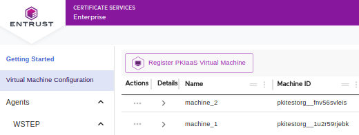 - Click PKIaaS Virtual Machine Configuration in the navigation sidebar to display the PKIaaS Virtual Machines grid.