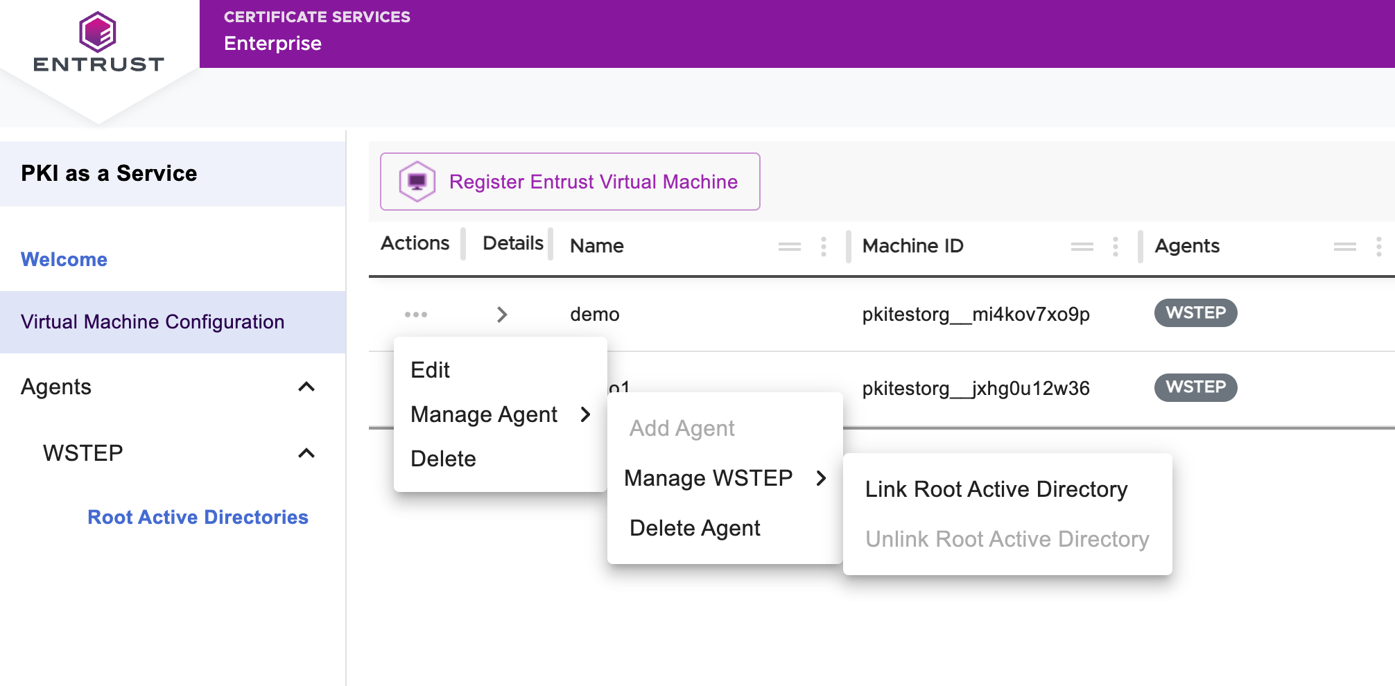 Select this command to add an agent to the PKIaaS Virtual Machine.