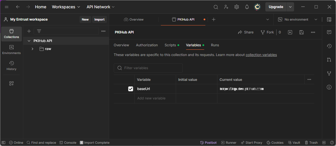 Configure the global settings of the imported PKIHub collection.