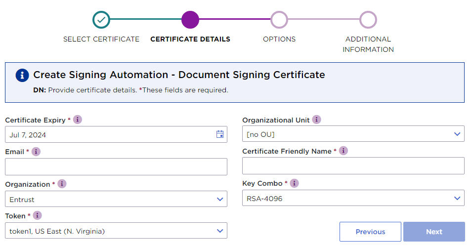 Certificate Friendly Name | A label for the keystores to identify the certificate when Integrating the PKCS #11 library with third-party applications. Spaces or special characters may cause errors. | |