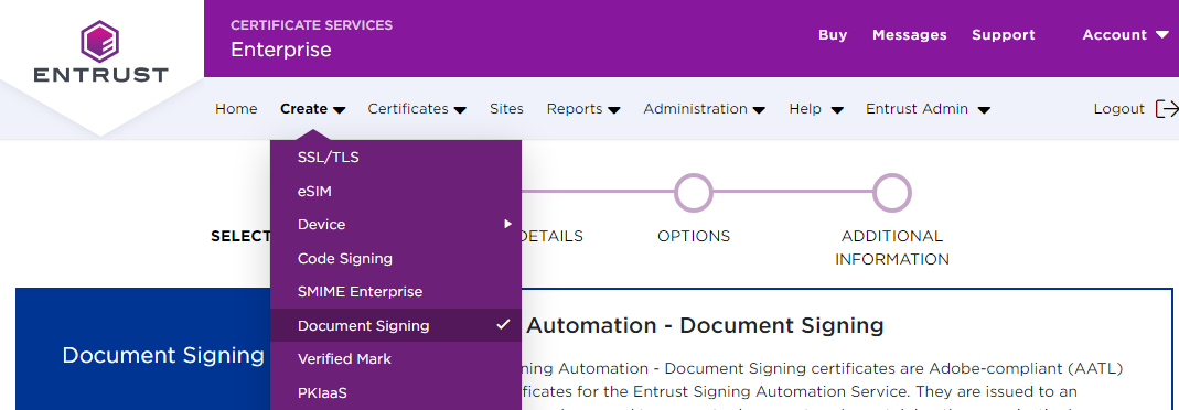 - Log in to the Entrust Certificate Services web portal at cloud.entrust.net.