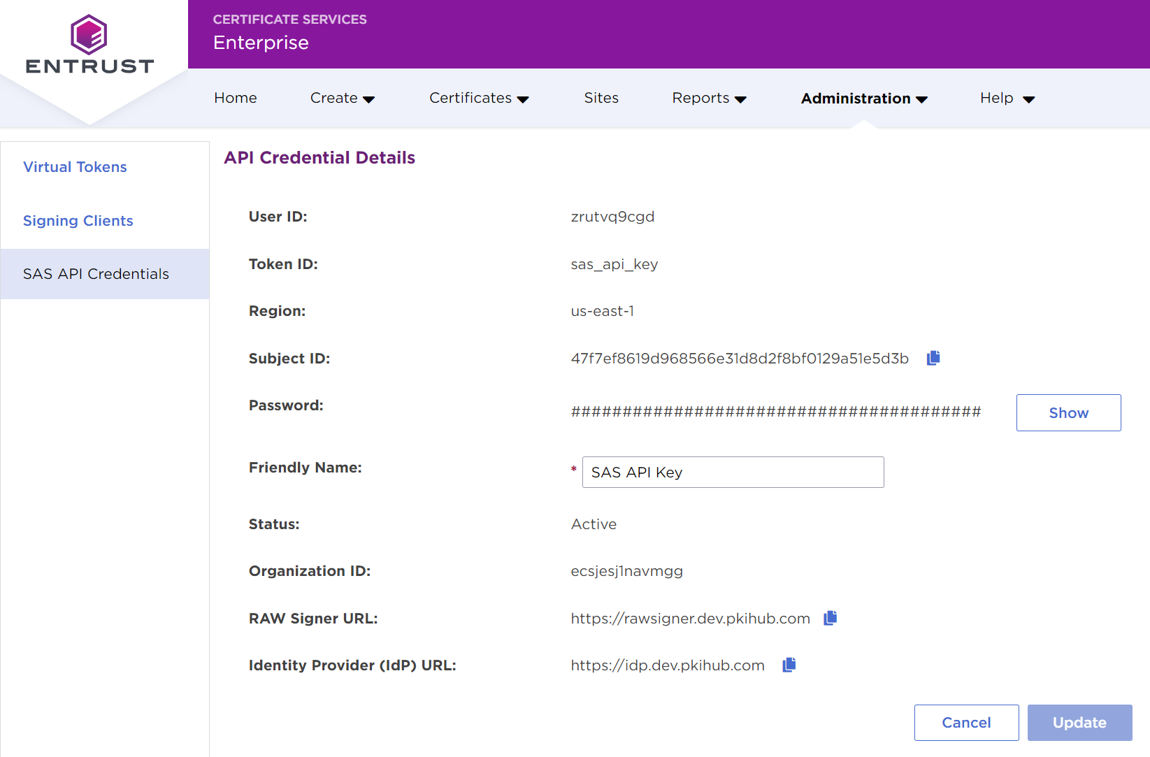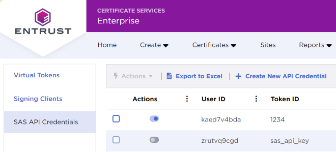 - In the sidebar, click on SAS API Credentials to list the generated SAS API credentials.