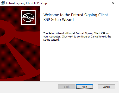 See below for how to install the Entrust KSP library with the Entrust Signing Client KSP Setup wizard.